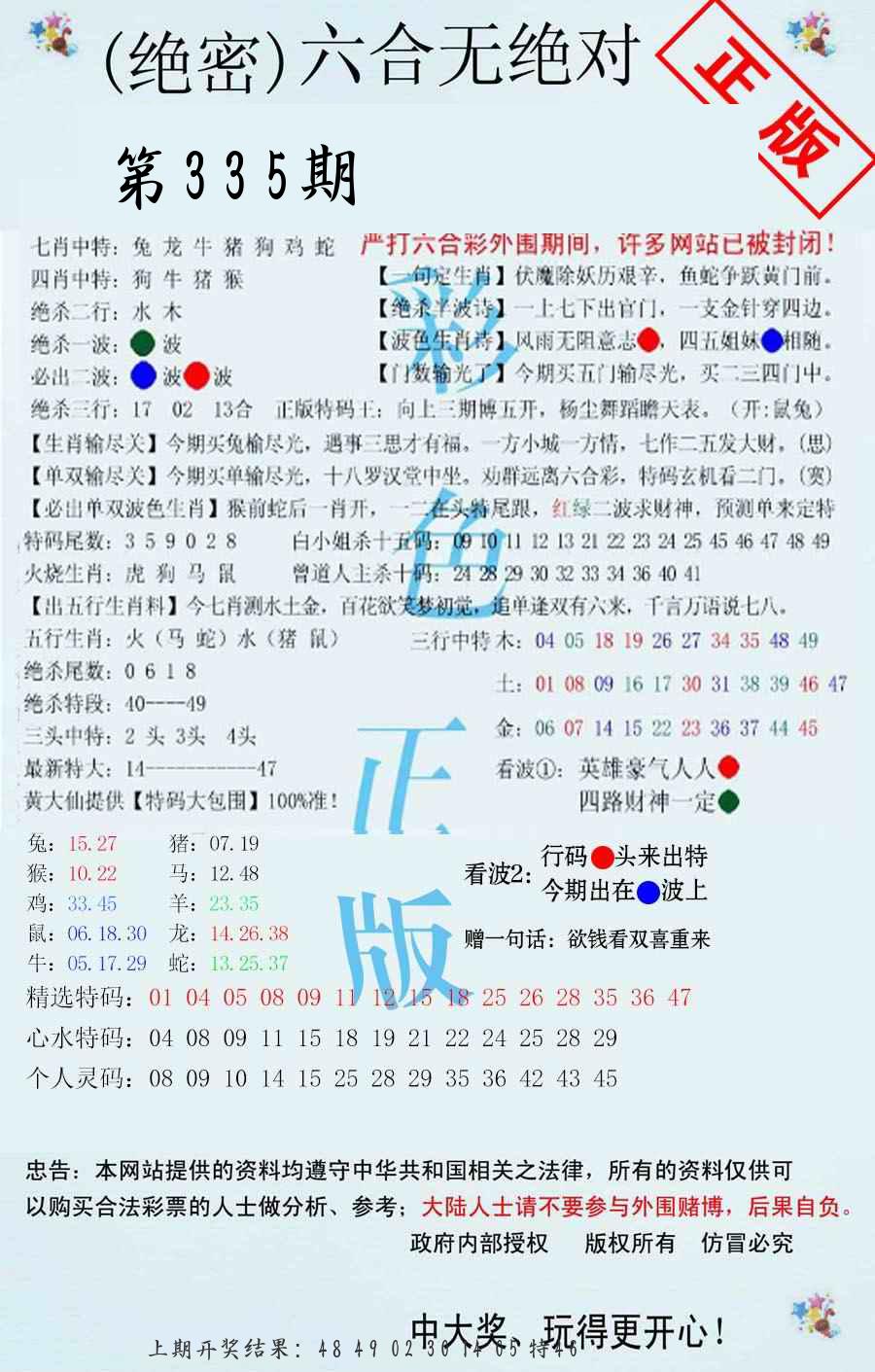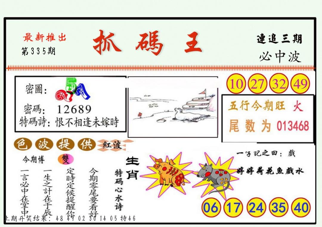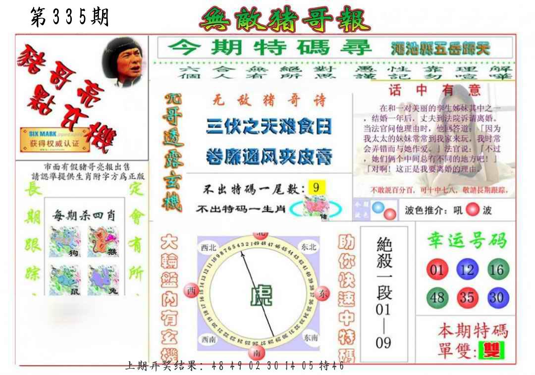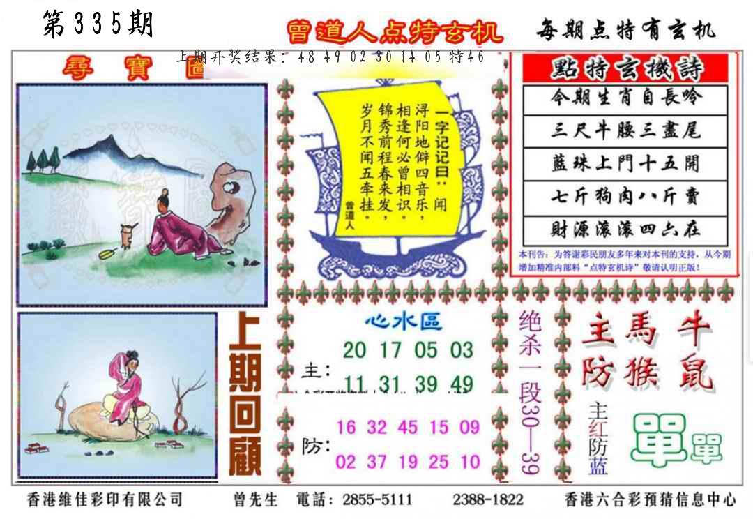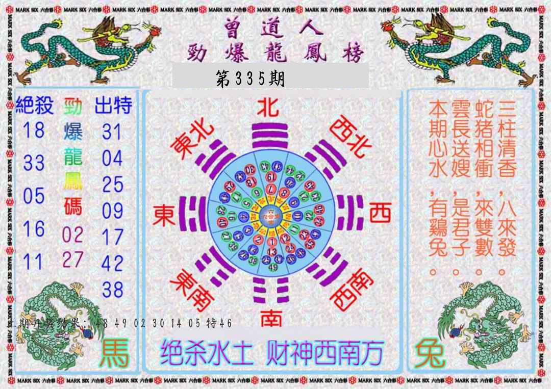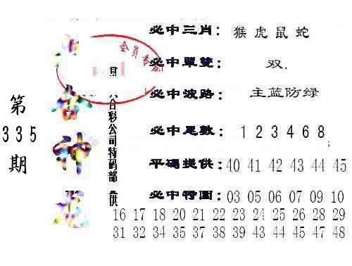| 334期 | 猴猪鼠龙牛鸡虎 | 46猴 |