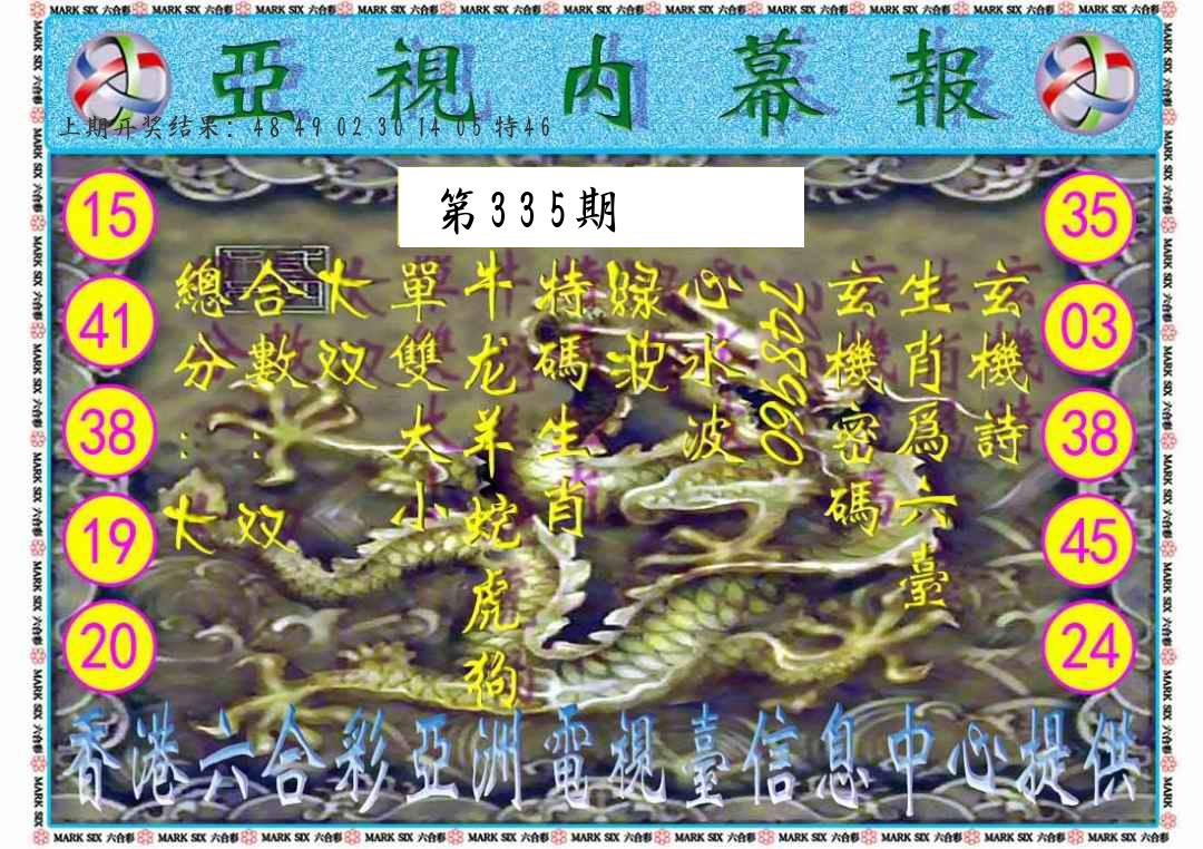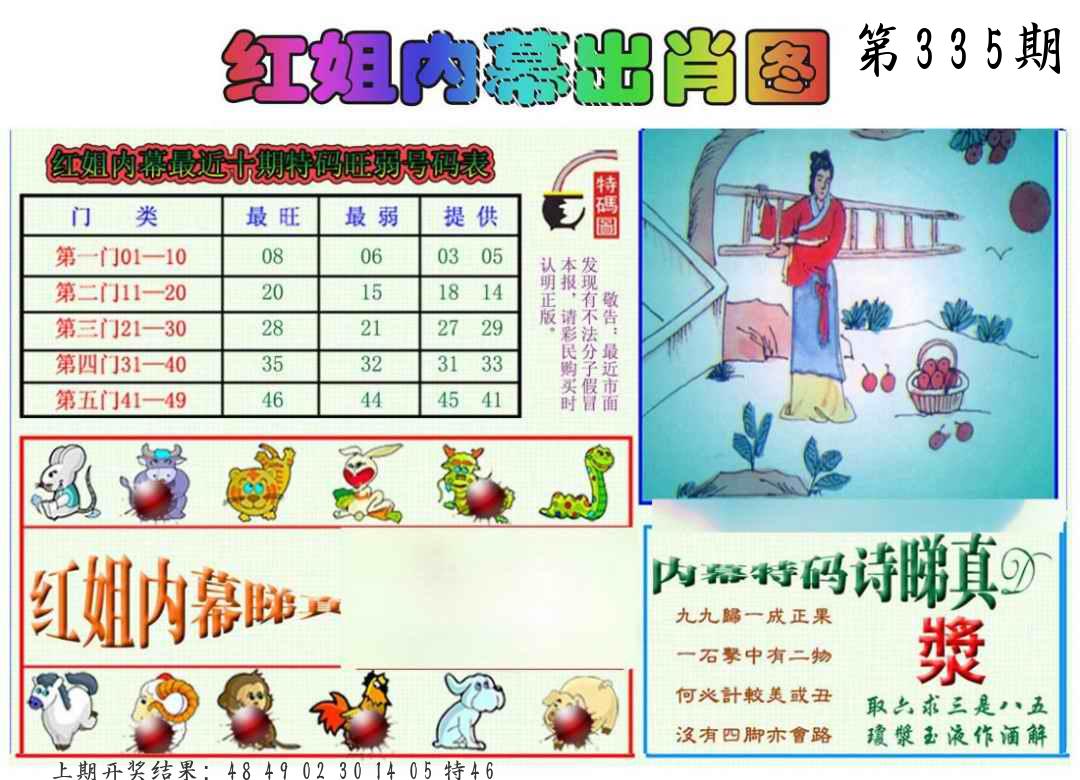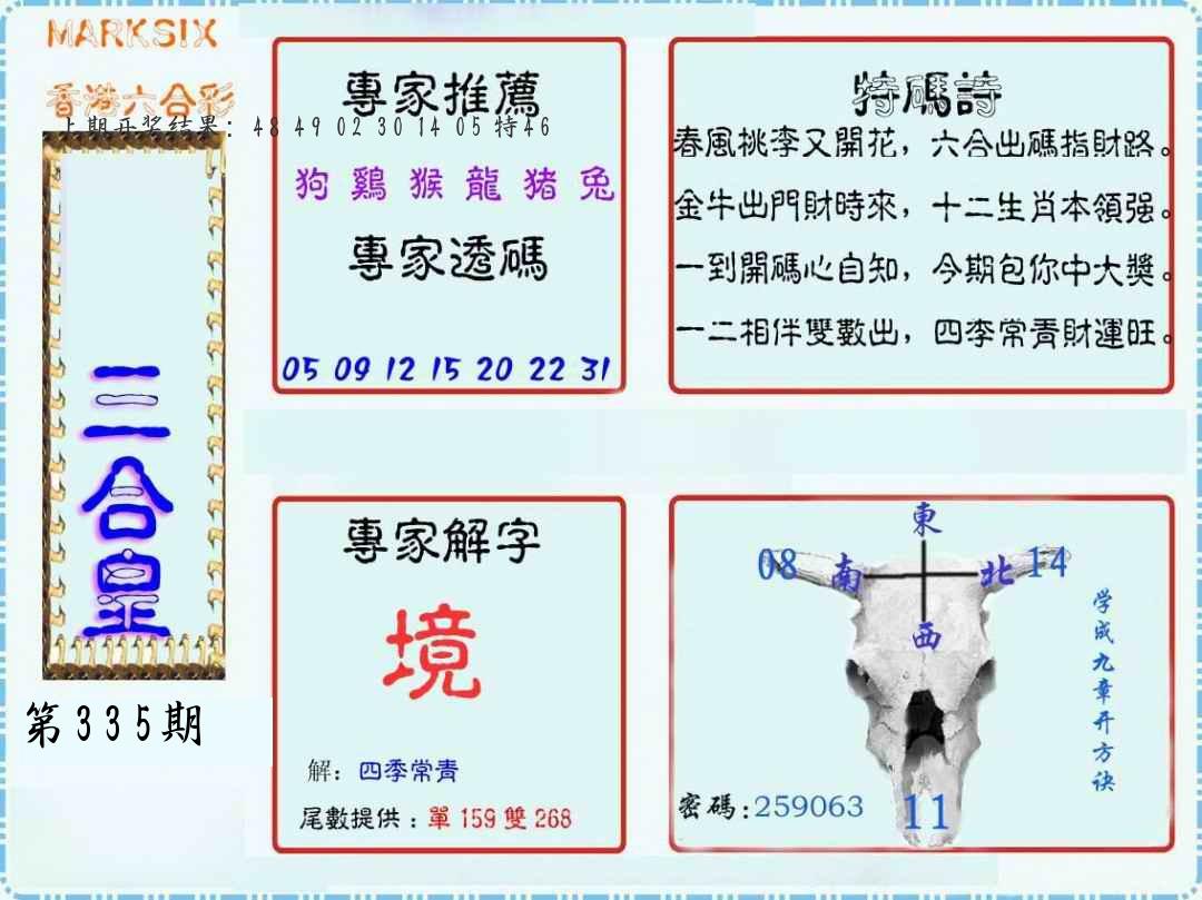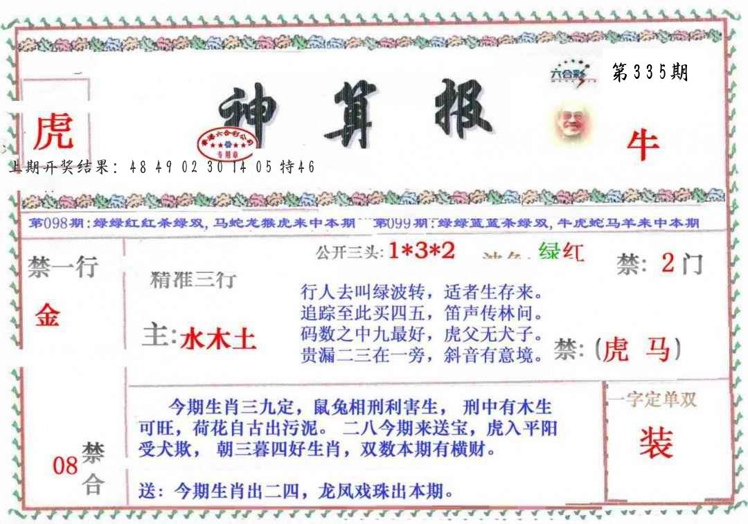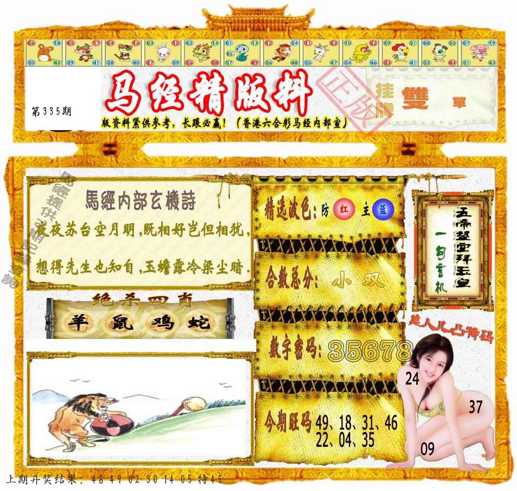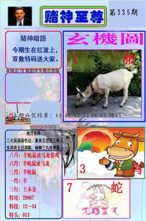 | 334期:九肖 | 虎牛鼠猪羊兔蛇猴狗 | 开:46猴 |
