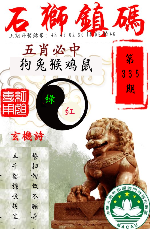 | 332期 | 鸡狗猴虎羊蛇鼠 | 12马 |
