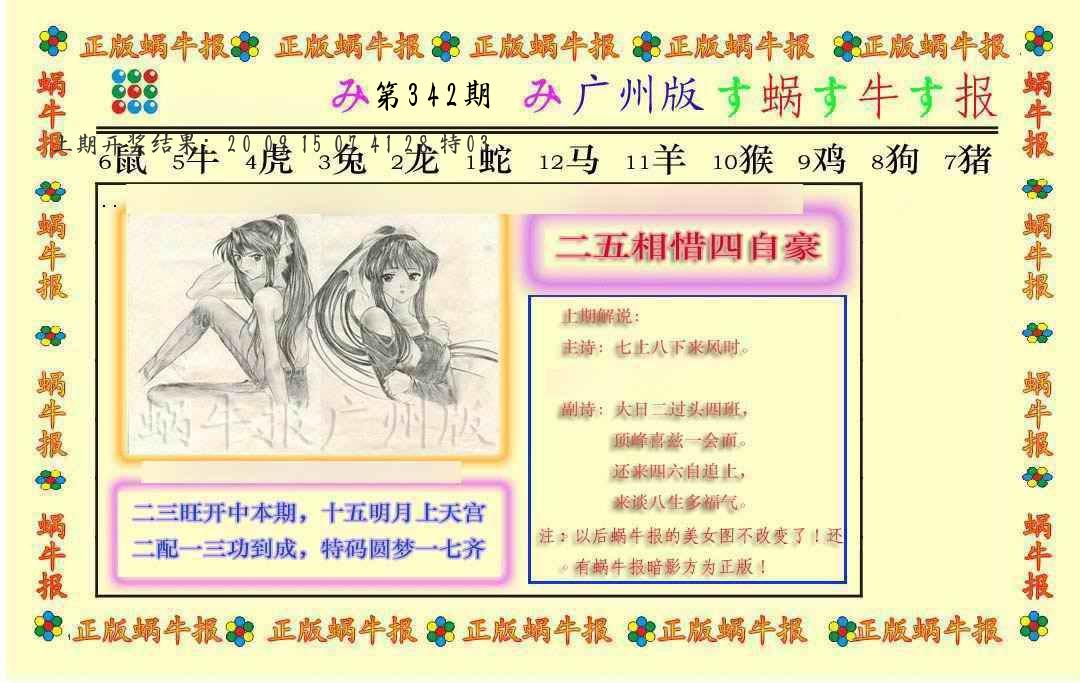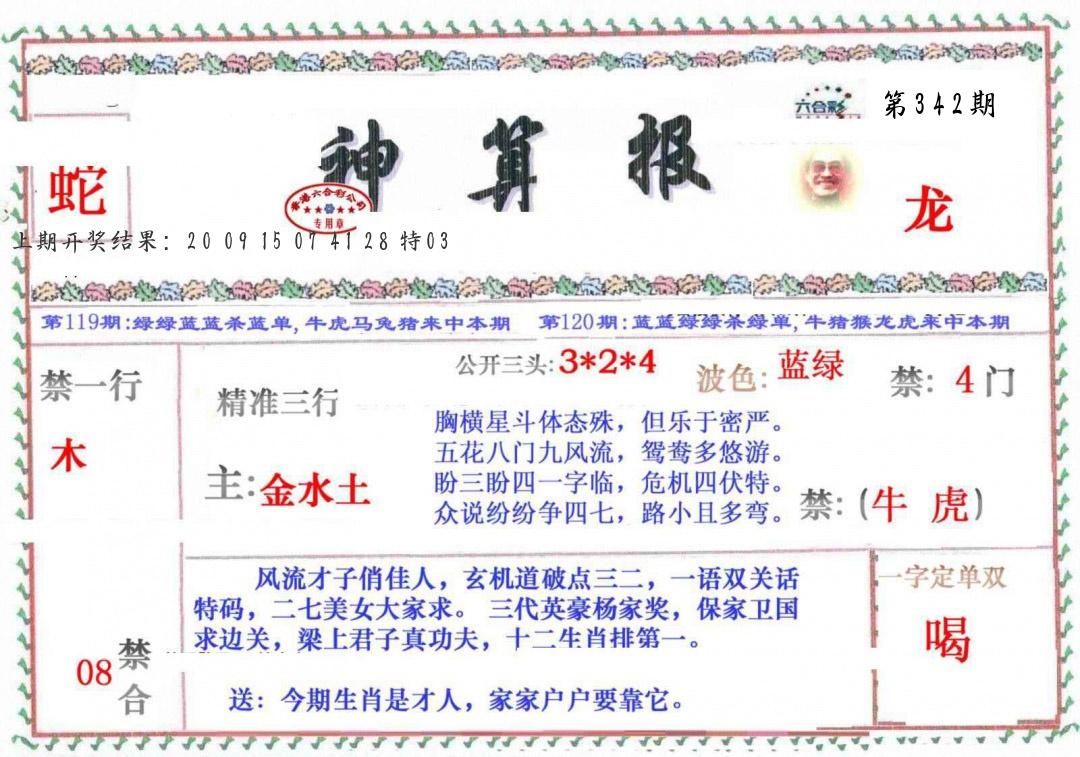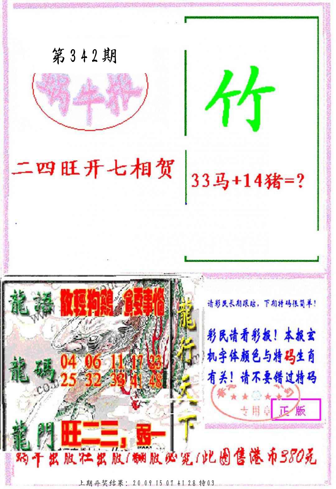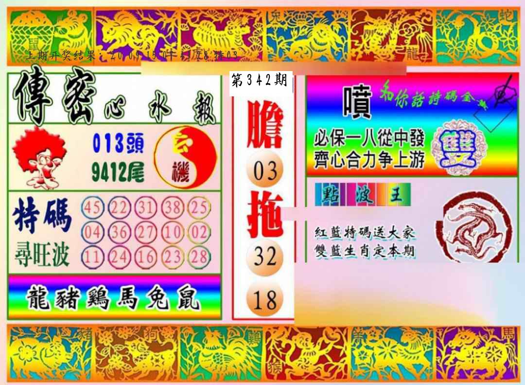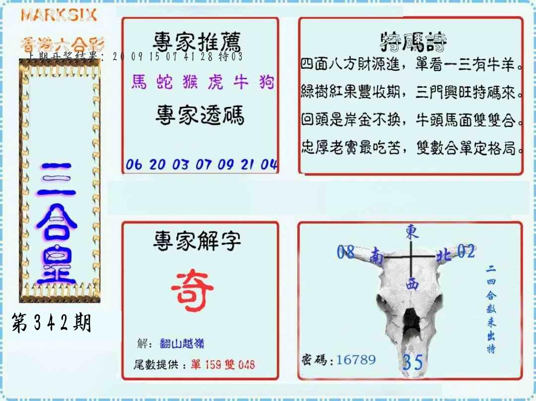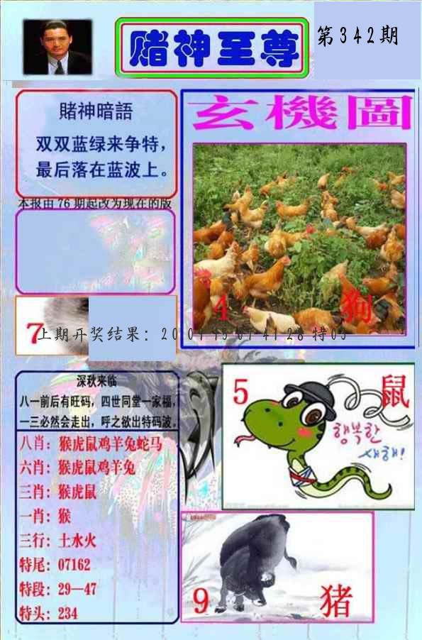 | 342期:九肖 | 牛龙狗蛇鼠鸡虎羊兔 | 开:???? |