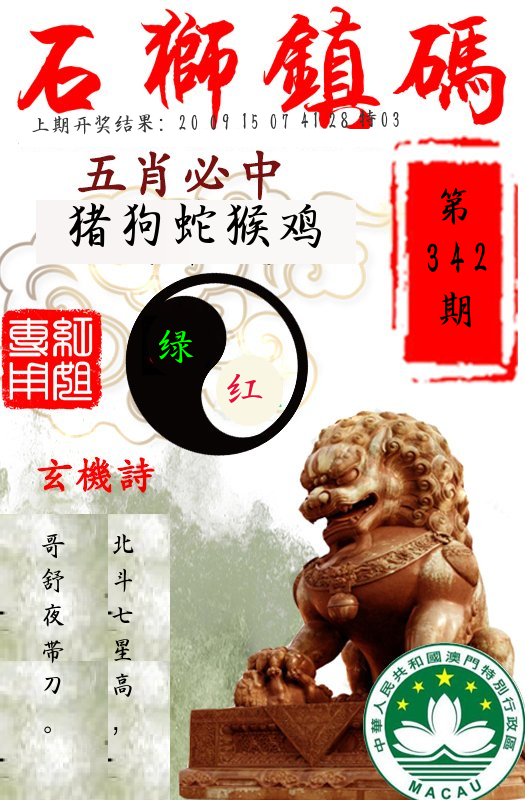 | 342期 | 鸡猴虎狗牛鼠羊 | ????? |